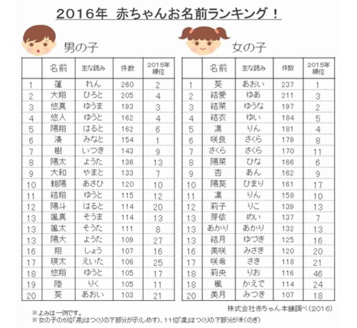 16年の赤ちゃんお名前ランキング 16年11月29日 エキサイトニュース